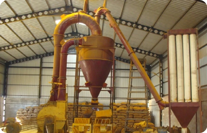 Pulverizing is a reduction of particle sized process. The process takes place at controlled cool temperature to retain aroma and keep the characteristics of the product intact. Blenders are used for roasting and blending of Spices